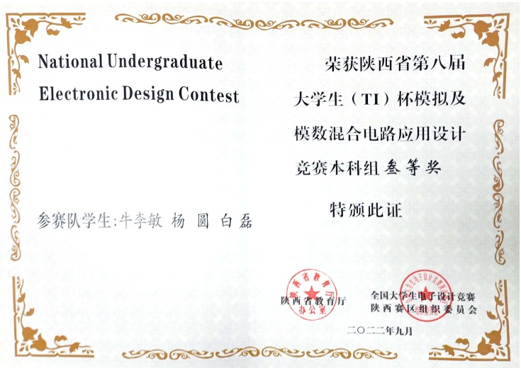 2020年陕西省TI杯模拟及模数混合电路应用设计竞赛:一等奖3项、三等奖2项