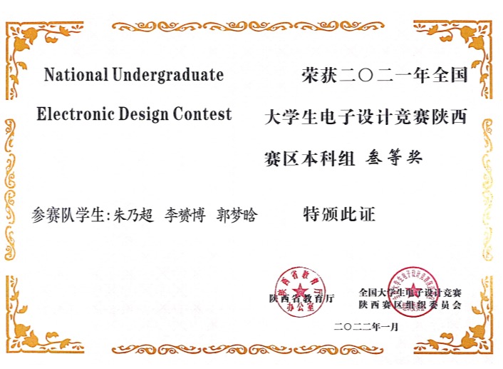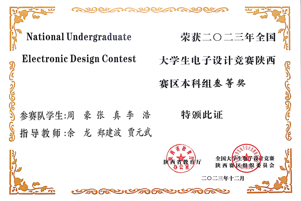 2023年中国大学生工程实践与创新能力大赛陕西赛区:二等奖1项、三等奖4项